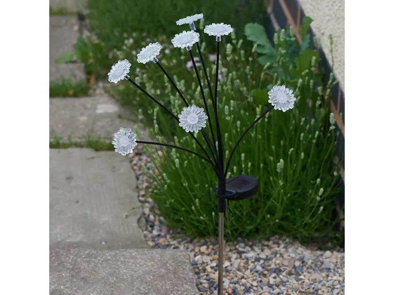 Transparante bloemblaadjes glinsteren en schitteren om elke buitenruimte een delicate, warmwitte uitstraling te geven! Perfect voor tuinpaden, opritten, terrassen, potten en bloembedden.