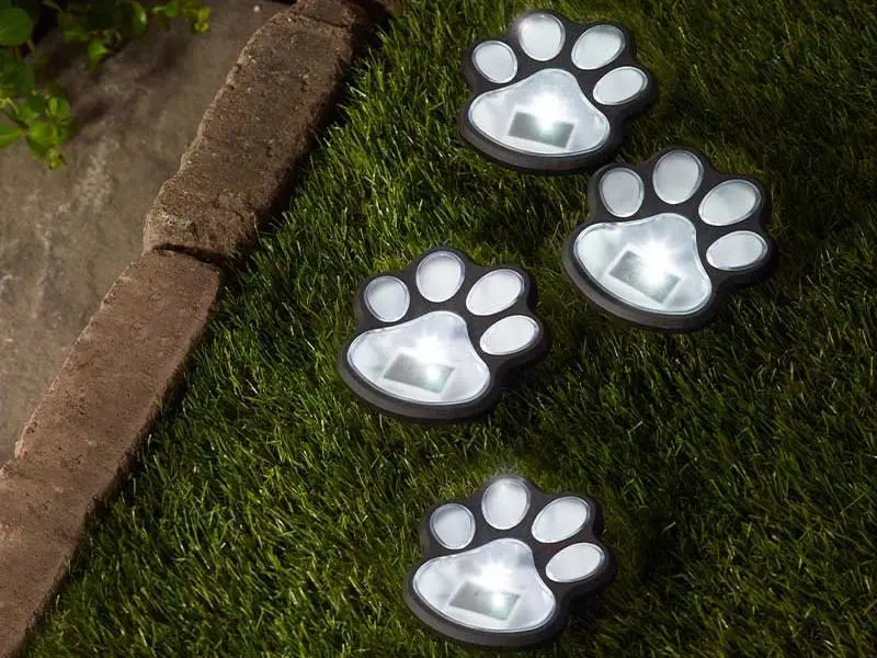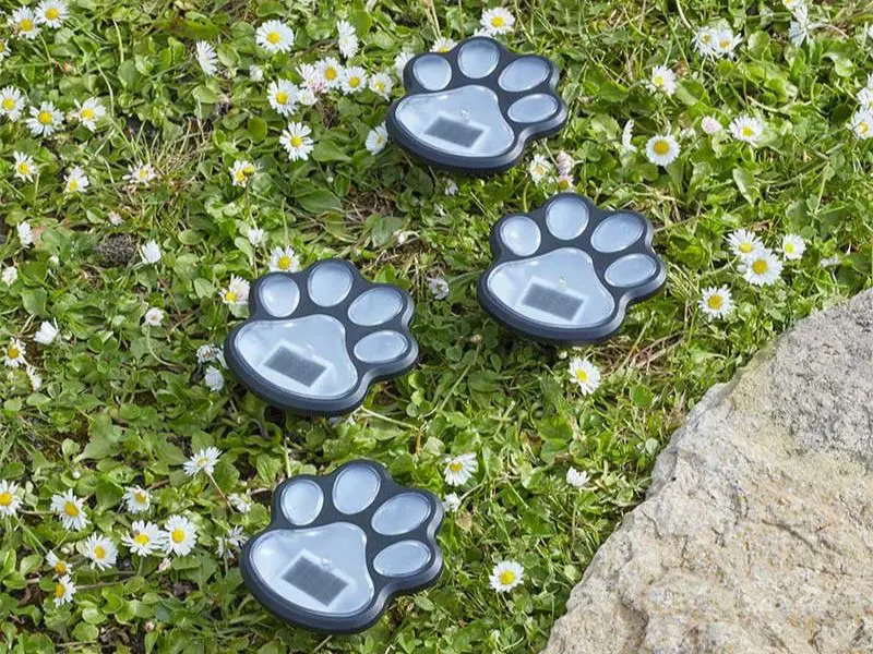 Fleur je buitenruimte op met deze leuke en charmante verlichte pootafdrukken. Ze laden op in het directe zonlicht en lichten 's nachts automatisch op dankzij de koudwitte LED.