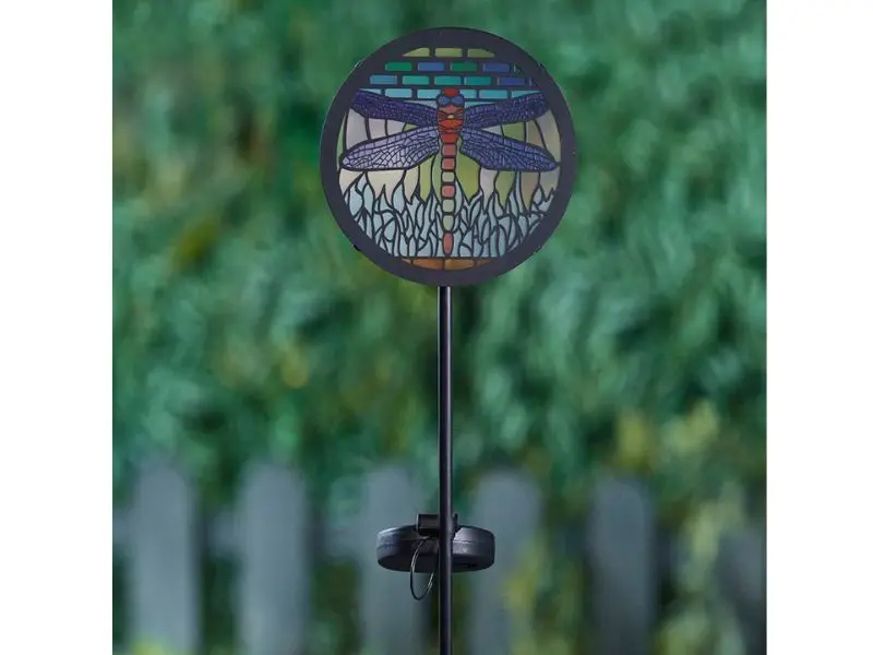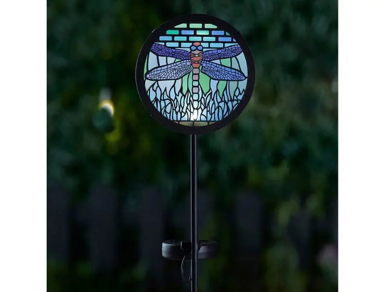 Overdag decoratie, ’s nachts verlichting. Dit prachtige zonne-energie-tuinlampje in de vorm van een libel heeft een handgeschilderde afwerking die overal buiten een vleugje kleur en stijl toevoegt! Het gedetailleerde silhouet van de libel zorgt voor een verlichtingseffect dat doet denken aan glas-in-lood. Perfect voor tuinpaden, opritten, terrassen, bloempotten en bloembedden. Eenvoudig te installeren: laadt overdag op, schijnt ’s nachts – geen snoeren of elektriciteit nodig! Ideaal als op zichzelf staand tuinelement of gebruik er meerdere om paden en grotere buitenruimtes te verlichten. Verpakt in een doos, perfect om cadeau te geven