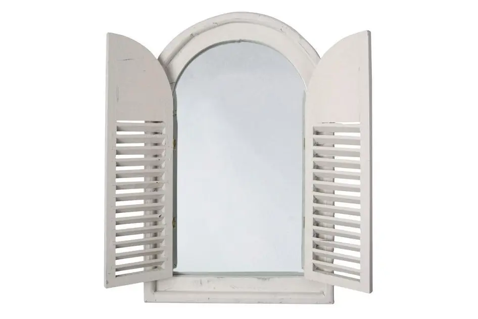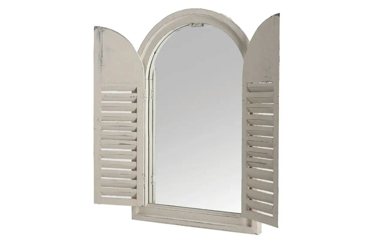 Een spiegel in de tuin creëert een extra dimensie en laat kleinere tuinen of tuingedeelten groter lijken. Dit spiegelraam van Esschert design heeft twee louvredeurtjes die een verborgen spiegel onthullen.