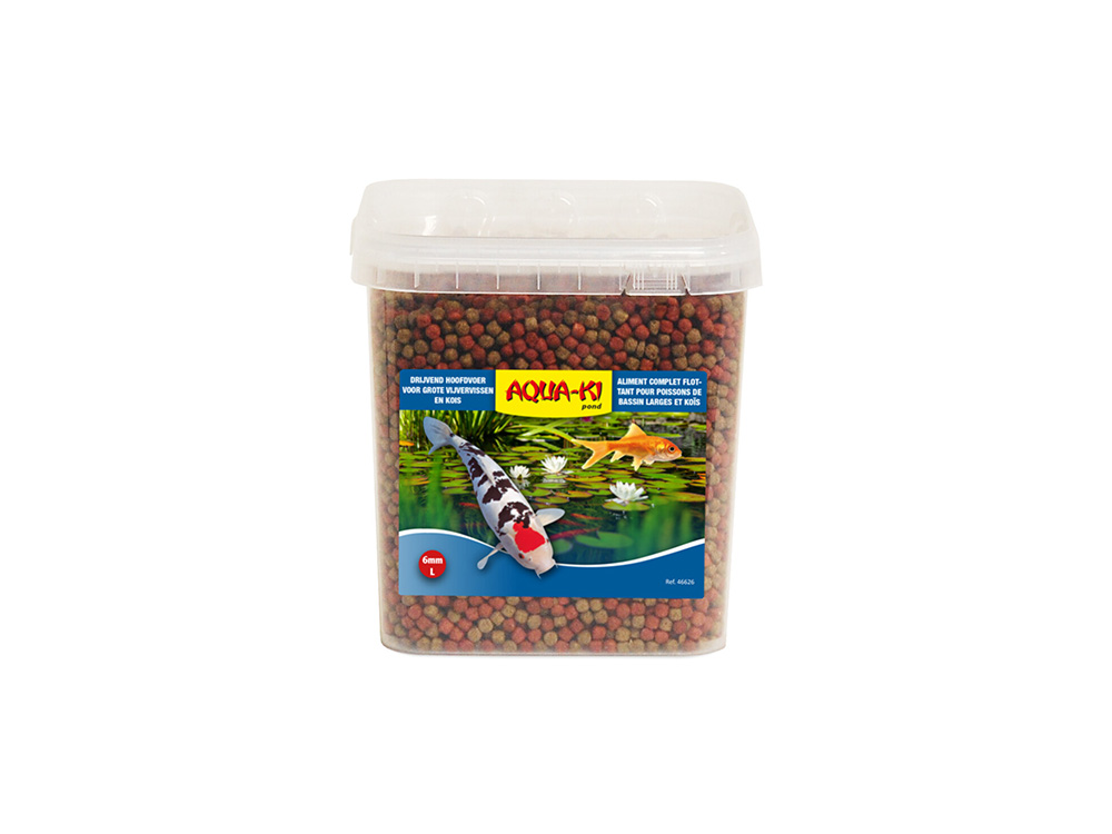 Aqua-ki Blauw is een complete mix vijverviskorrels, een complete voeding voor alle soorten vijvervissen en koïs. De Aqua-ki drijvende viskorrel kan het gehele jaar doorgevoerd worden zolang de vissen aan de oppervlakte komen. Door de toevoeging van carotenen aan de rode korrels wordt de kleur van jouw vijvervissen op een natuurlijke manier behouden.
