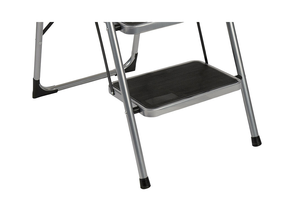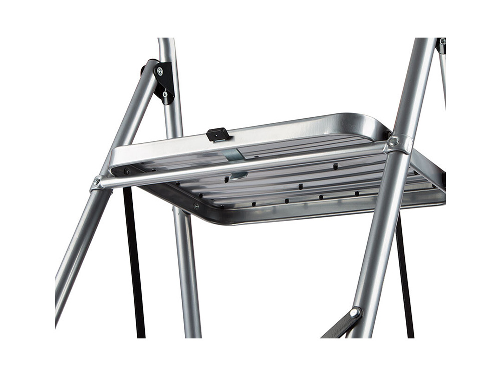 De ladder is onderaan voorzien van antislipvoetjes zodat hij bij gebruik niet kan wegglijden. Bovendien zorgt de hoge beugel voor extra veiligheid.