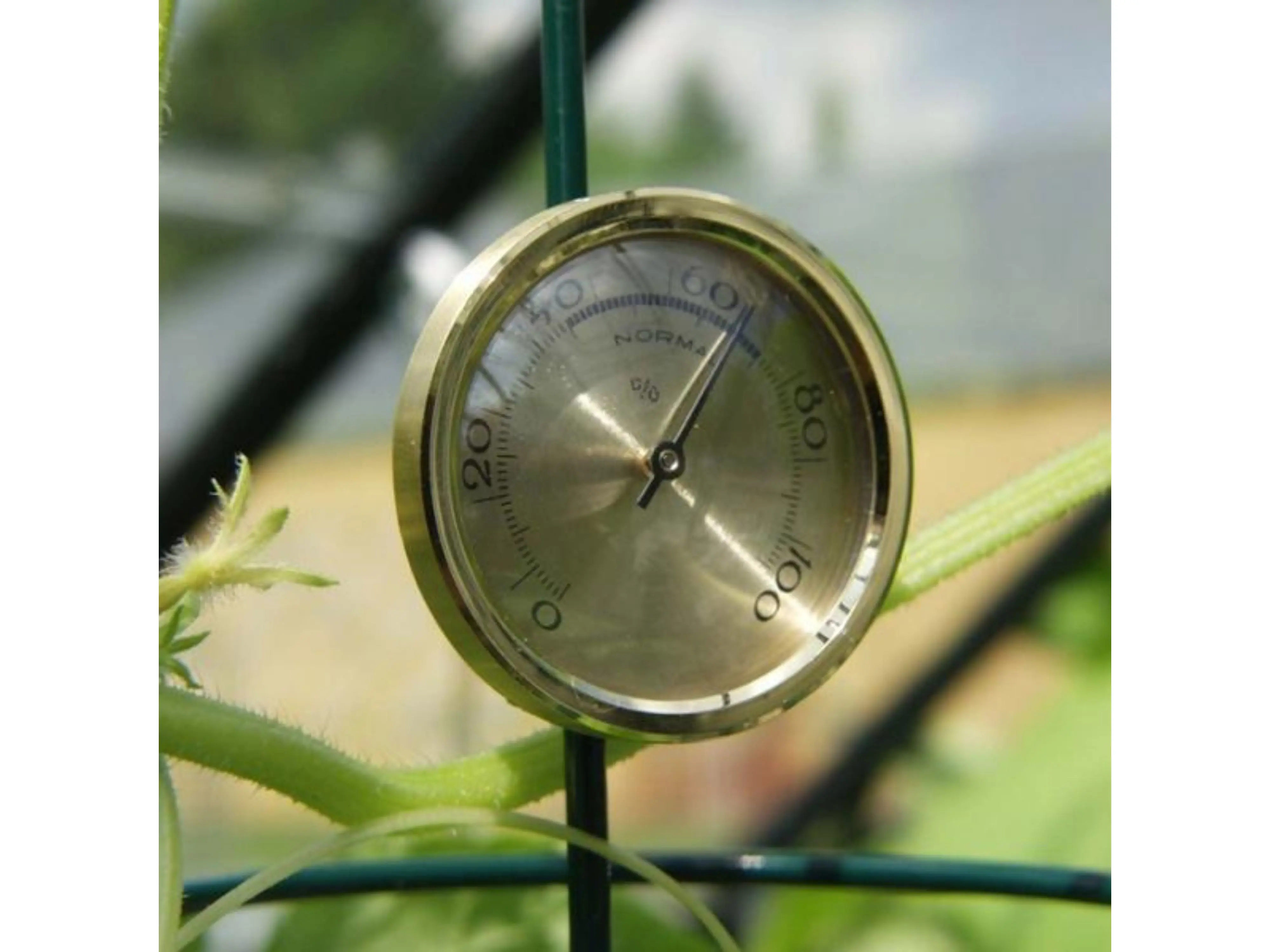 Vochtige serres leiden snel tot schimmelinfecties. Een goede ventilatie zorgt ervoor dat de temperatuur, maar ook de luchtvochtigheid daalt. Met deze hygrometer meet je eenvoudig de vochtigheid van de lucht in je serre.