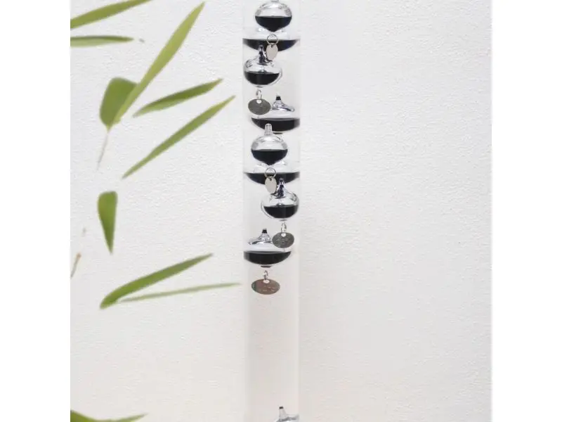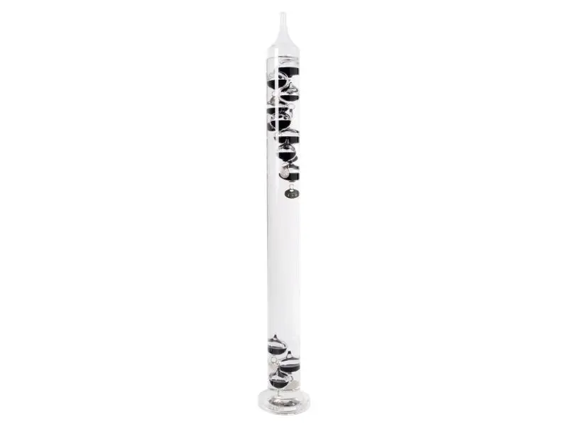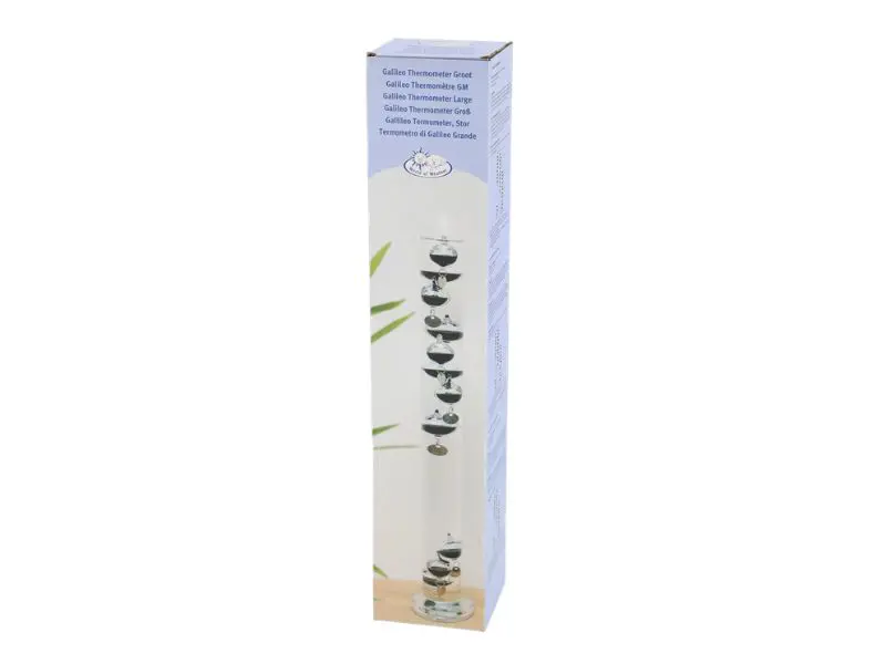 Deze thermometer werkt op het principe ontdek door Galileo. Galileo ontdekte dat ballen stijgen of dalen, bij de verandering van temperatuur, als zij in een gevulde cylinder met bepaalde vloeistof zitten. Wanneer de temperatuur stijgt wordt de vloeistof in de glazen cylinder minder dicht en zinken de zwaardere ballen langzaam naar de bodem. Deze thermometer is af te lezen door te kijken naar de laagst hangende bal. De laagst drijvende bal wijst de huidige temperatuur aan. De thermometer is uitsluitend voor binnen gebruik en geeft temperaturen aan van 16˚C tot 36˚C of 60˚F tot 98˚F.