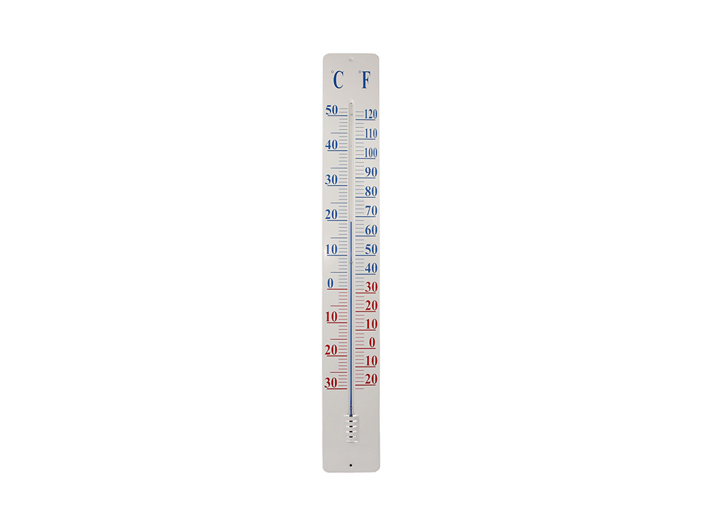 Deze thermometer van Esschert Design straalt eenvoud uit, waardoor hij op elke plek mooi zal hangen. Met zijn extra grote formaat is de temperatuur gemakkelijk af te lezen vanaf een afstand. Hij geeft de temperatuur aan in graden Celsius (-30°C tot +52°C) en Fahrenheit.