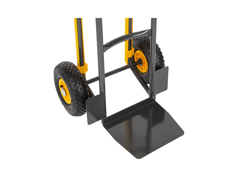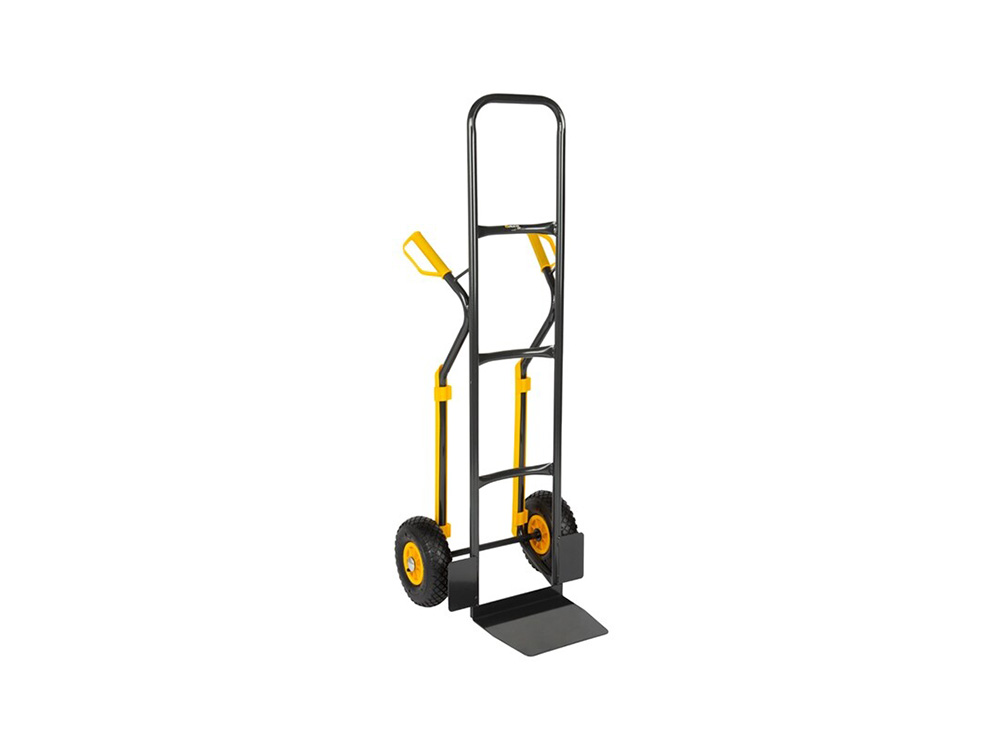 Deze steekwagen kan lasten dragen tot wel 200 kg. Hij is uitgerust met 2 luchtbanden en 2 gele handgrepen in kunststof.