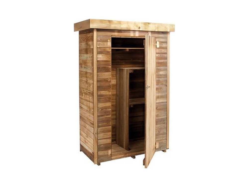 Theo is een leuke compacte tuinberging, eerder een tuinkast met een moderne uitstraling. De berging is voorzien van een plankenvloer en is reeds vooraf ingedeeld met houten opbergboorden.