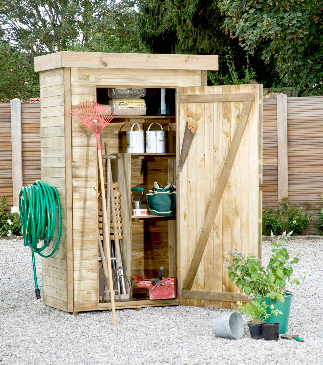 Tuinberging Theo heeft een enkele deur en is drukgeïmpregneerd voor een langere levensduur.