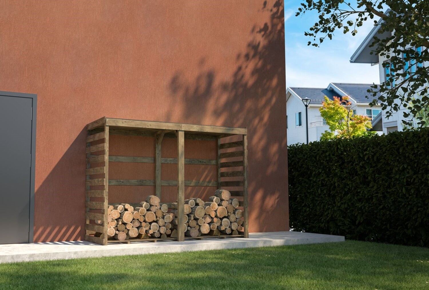 In deze berging kan je tot 4 m³ houtblokken opslaan.