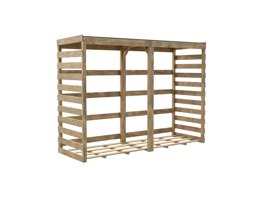 De Columbus houtberging is ontworpen om meerdere kubieke meter houtblokken op te slaan, beschermd tegen de elementen. De houtopslag van Forest-Style is gemaakt uit geïmpregneerde Noorse den afkomstig uit duurzaam beheerde bossen. Deze opslagruimte maakt het efficiënt organiseren van houtblokken van verschillende maten mogelijk.