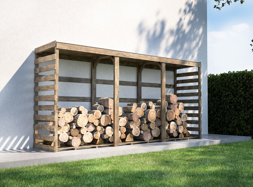 In deze berging kan je tot 6 m³ houtblokken opslaan.