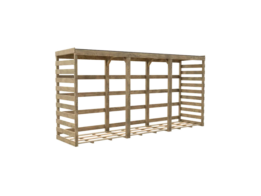 De Columbus houtberging is ontworpen om meerdere kubieke meter houtblokken op te slaan, beschermd tegen de elementen. De houtopslag van Forest-Style is gemaakt uit geïmpregneerde Noorse den afkomstig uit duurzaam beheerde bossen. Deze opslagruimte maakt het efficiënt organiseren van houtblokken van verschillende maten mogelijk.