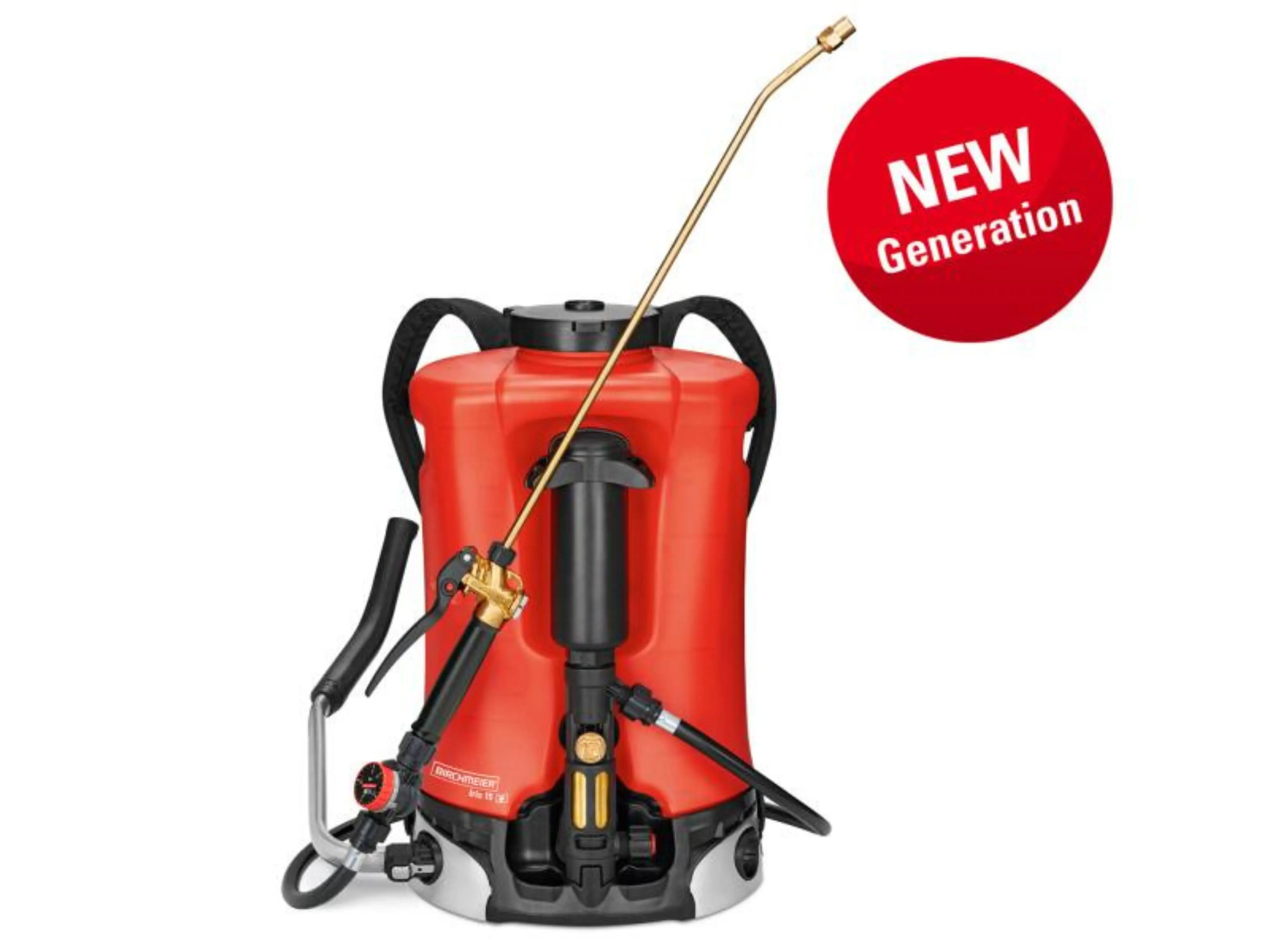 De ergonomisch gevormde tank is voorzien van een S-vormige, gevoerde draagriem met een handig kliksysteem. De pomphendel heeft een anatomisch gevormde, comfortabele handgreep en is zowel door links- als rechtshandigen te gebruiken. Bovendien is de hendel in lengte verstelbaar en vervaardigd uit roestvrij staal. De revolverafsluiter met geïntegreerd fijnfilter beschikt over een robuuste messing behuizing en een ergonomische hendel.