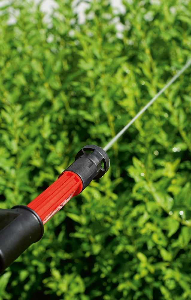 Sproeirevolver voor het behandelen van struiken, heggen of bomen. Deze gun is regelbaar van nevelstand tot 4 meter tot een krachtige spuitstraal van 6 meter ver.