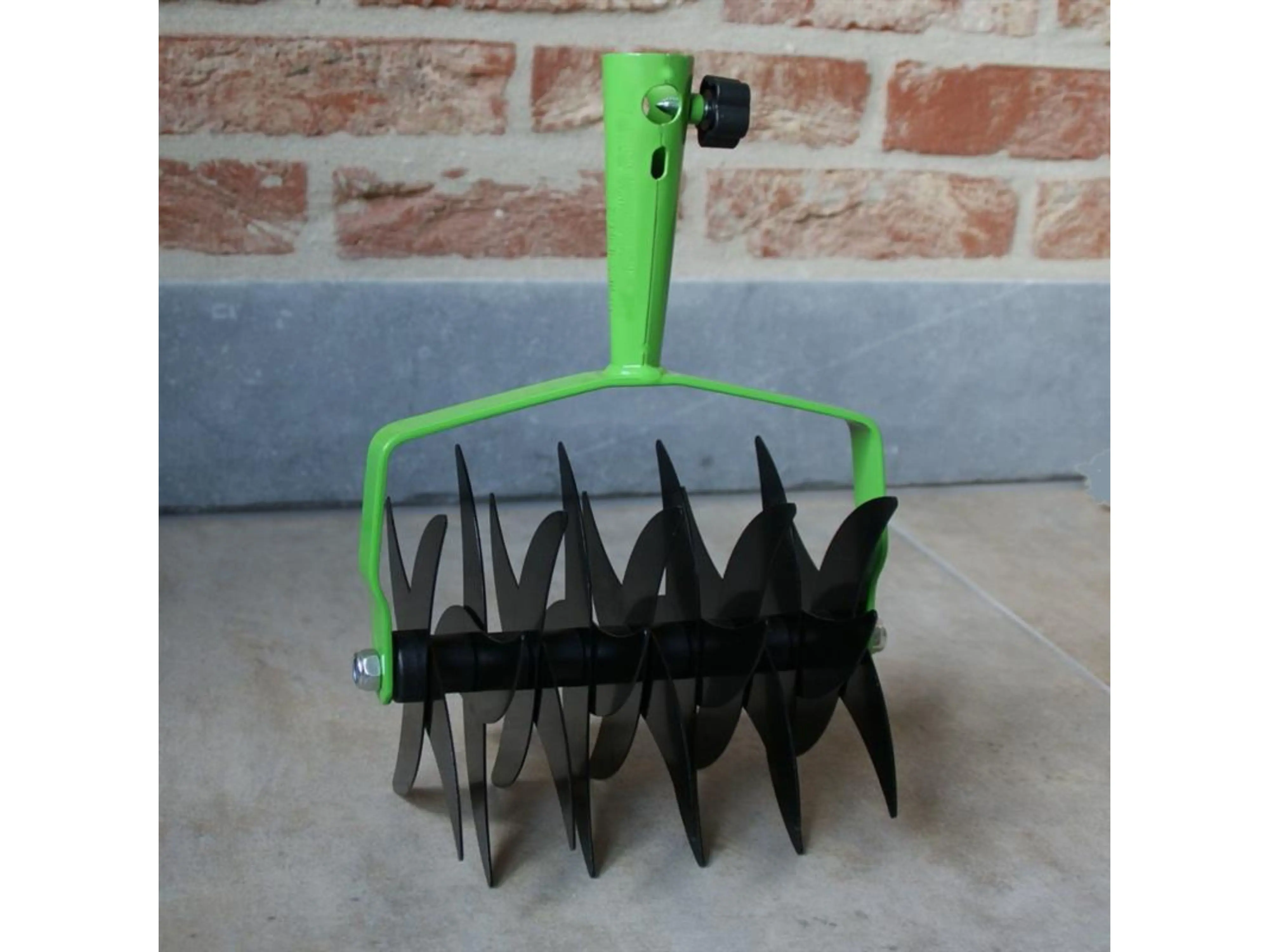 Met dit gereedschap verkruimel je de grond van jouw moes- of siertuin. Dit tuingereedschap bewerkt jouw tuingrond als een handige breker, de 9 schijven met telkens 4 messen, zorgen voor een gelijkmatig resultaat. De messen banen zich een weg doorheen de grond en verwerken de grote brokken grond tot fijnere, goed bewerkbare grond.