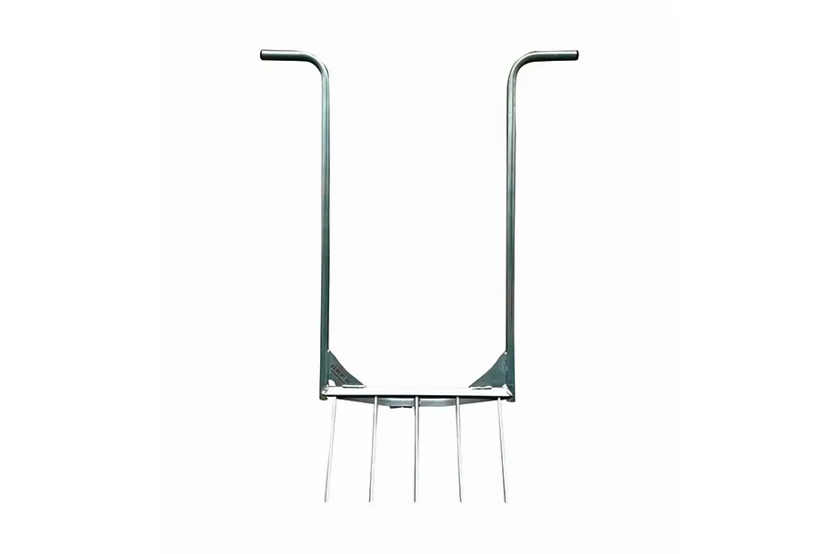 Stevige constructie in gegalvaniseerd staal. De tanden zijn in 'beitel-kwaliteit'. De brede opening tussen de handvatten zorgt ervoor dat er voldoende ruimte is voor het lichaam. De woelvork bezit 5 tanden van 26 cm en is voorzien van twee handgrepen om de bodem te bewerken met een minimale inspanning.