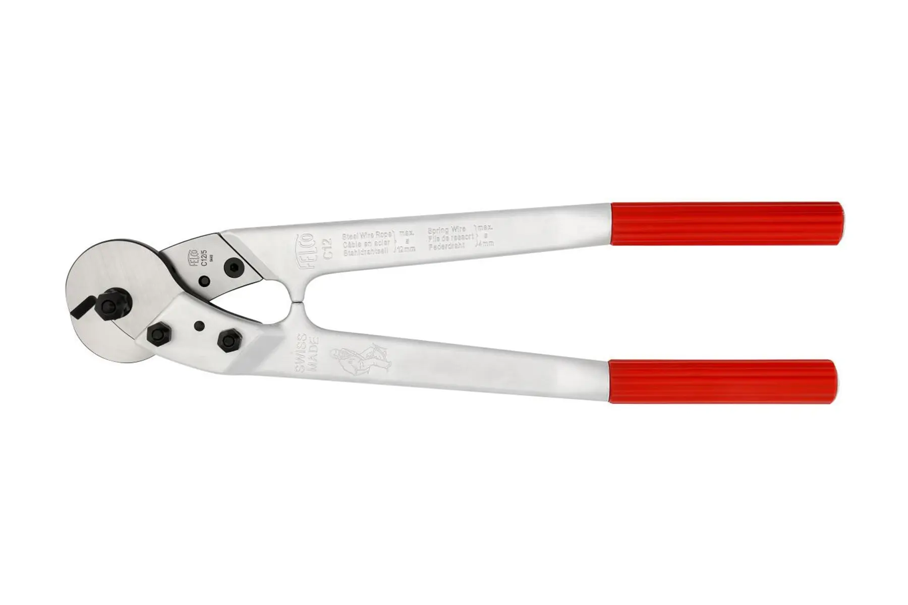 Professionele kabelschaar Felco C12 voor het knippen van metalen afrastering, omheiningen en betonnetten. Kabelschaar met onbreekbare handgrepen van gesmeed, gehard aluminium. De gehard stalen messen en bouten zijn van hoge kwaliteit, hierbij kunnen alle onderdelen kunnen worden vervangen.