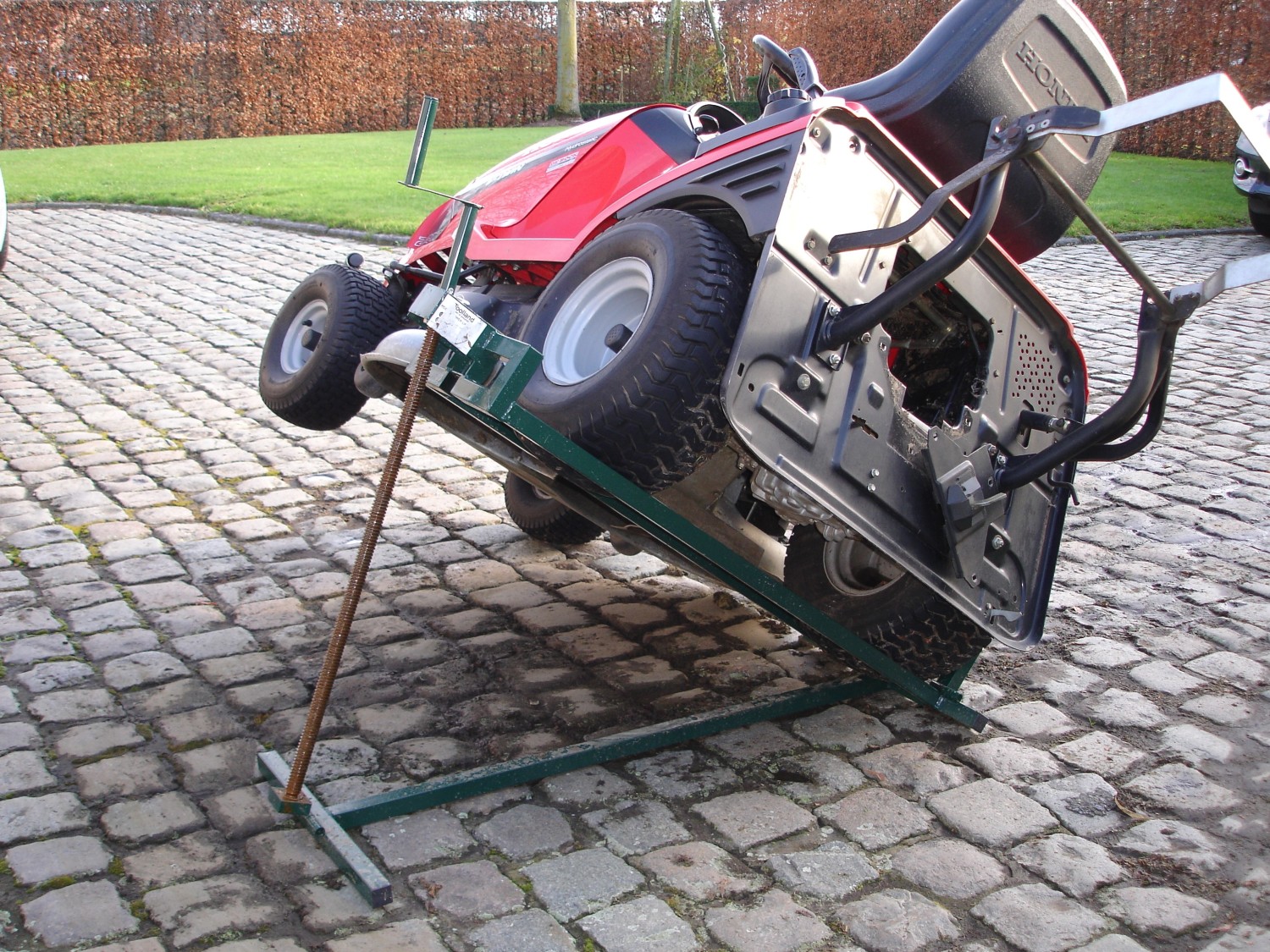 Je kan zowel voorwaarts als achterwaarts de krik oprijden. Met de draaihendel til je de zitmaaier veilig de hoogte in aan één zijde. De krik met hendel vouwt vlot dicht en vraagt weinig opslagruimte. Dit liftsysteem is eveneens geschikt voor quads.