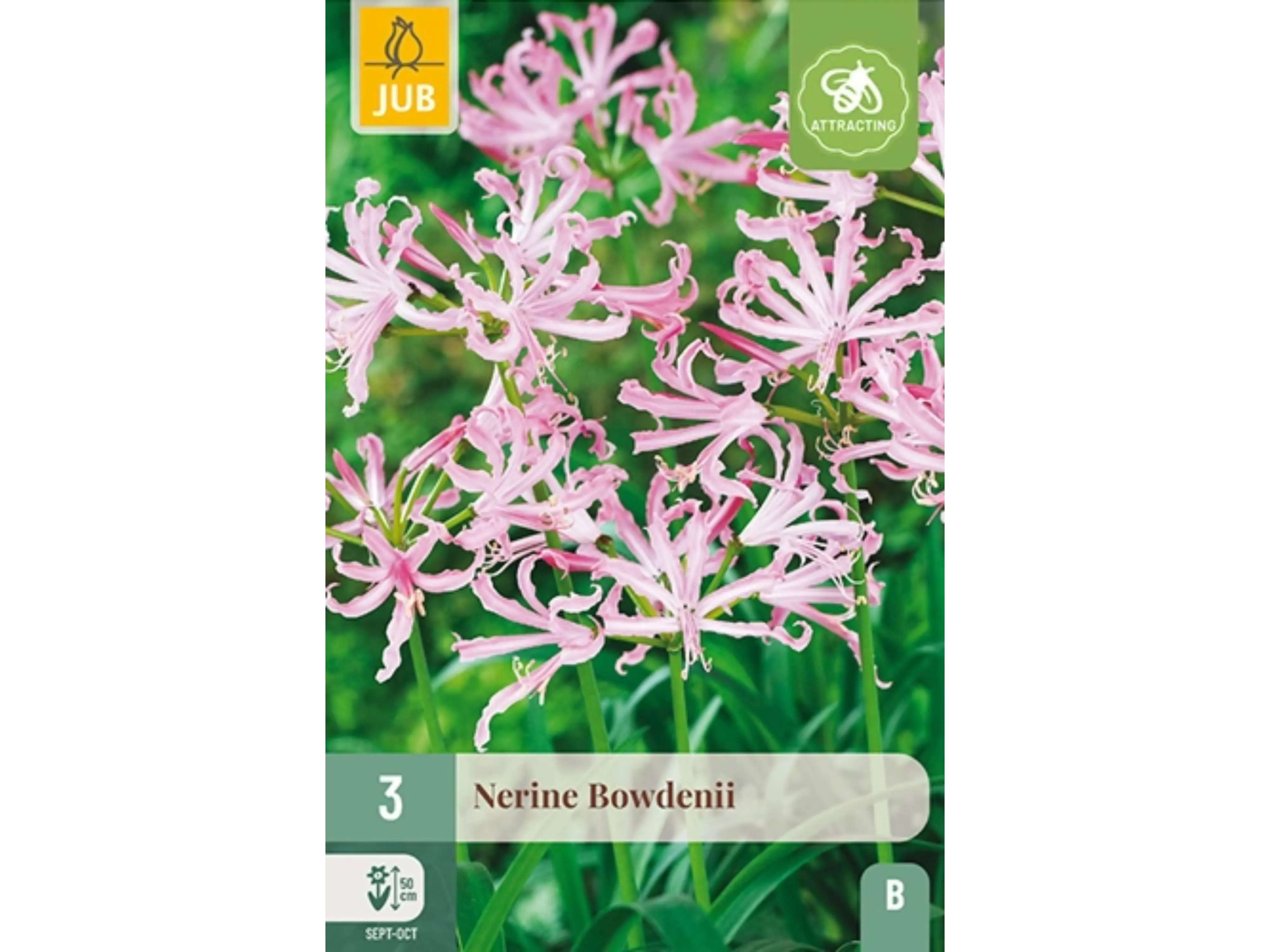 Als de meeste bloemen in de tuin verwelken, verschijnt de Nerine ‘Bowdenii’ in september en oktober. Bij gunstig weer kan de bloei lange tijd aanhouden. De felroze bloemen staan op hoge, bladloze en stevige stengels. De smalle bloemblaadjes krullen sierlijk naar achteren, met trompetvormige bloemen in schermen en opvallende meeldraden. Het blad verschijnt meestal pas laat in het najaar, aan de basis van de plant. Met een hoogte van circa 50 cm is Nerine ‘Bowdenii’ zowel geschikt als snijbloem als voor de tuin en potten.