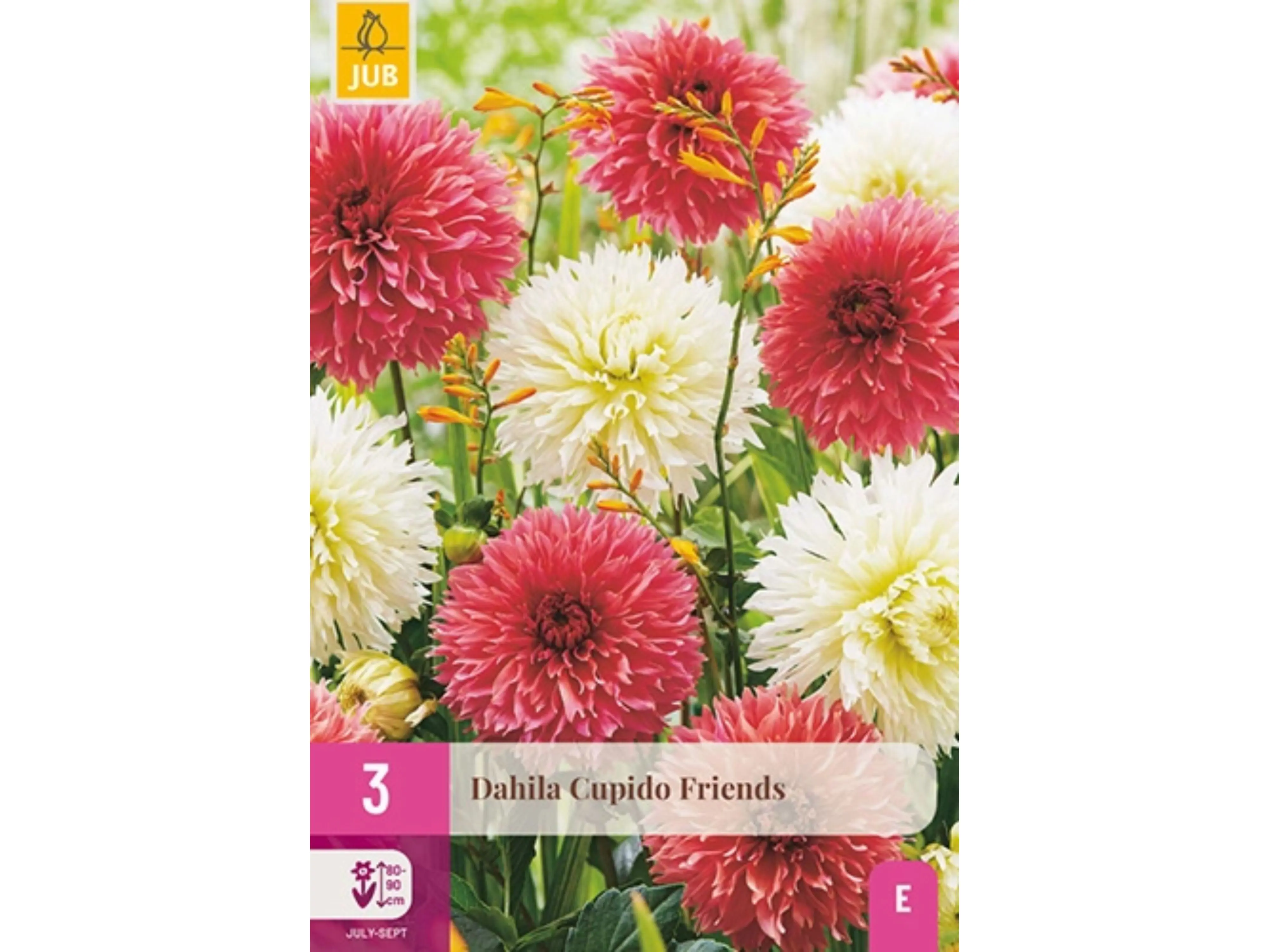 De grootbloemige, decoratieve dahlia Cupido Friends is een uitbundige zomerbloeier die maandenlang kleur in de tuin brengt. Van juli tot de eerste nachtvorst staat deze dahlia in bloei. Met een hoogte van 90–100 cm kan het soms nodig zijn de stelen te ondersteunen.