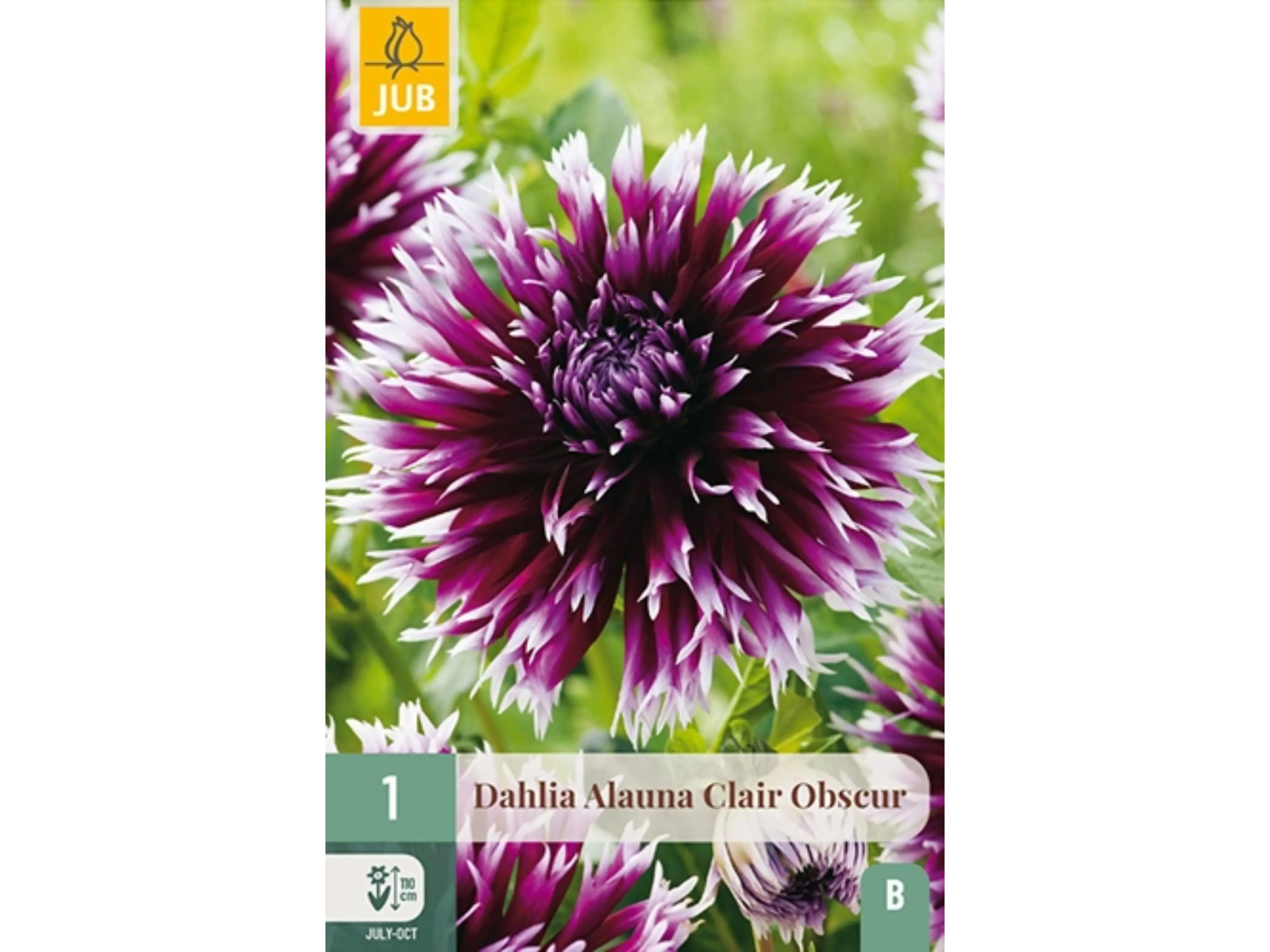 De bijzondere fimbriata dahlia ‘Alauna Clair Obscur’ is een echte zomertopper die maandenlang kleur geeft. Van juli tot de eerste nachtvorst bloeit deze dahlia uitbundig. Met een hoogte van 90–110 cm kunnen de bloemstelen soms wat ondersteuning gebruiken.
