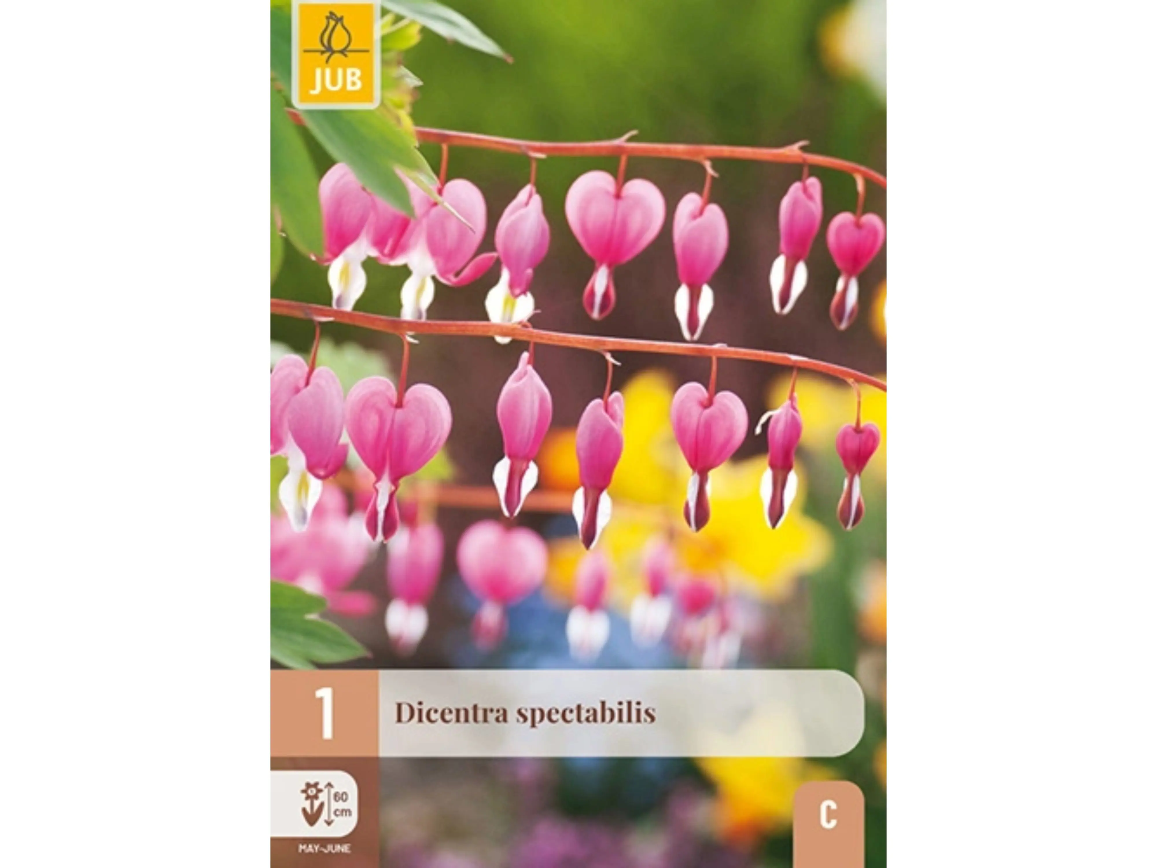 Dicentra spectabilis, beter bekend als het gebroken hartje, dankt zijn naam aan de karakteristieke hartvorm van de bloemen. De bloemen zijn wit met rozerode accenten en hangen sierlijk in trosjes. Het grijsgroene blad heeft een witte onderzijde en verschijnt in het voorjaar, waarna de plant van april tot juni bloeit. In juli trekt Dicentra zich terug onder de grond, waardoor de plek leeg komt te vallen. Dit kan worden opgevuld met een plant die later tot ontwikkeling komt, zoals gipskruid.