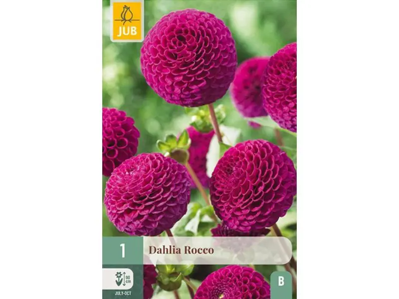 Na de bloei kunnen de knollen vorstvrij worden bewaard, zodat je er jarenlang van kunt genieten. Rocco combineert prachtig met vaste planten en andere dahlia’s en is dankzij zijn bolvormige bloemen een echte blikvanger in de border.