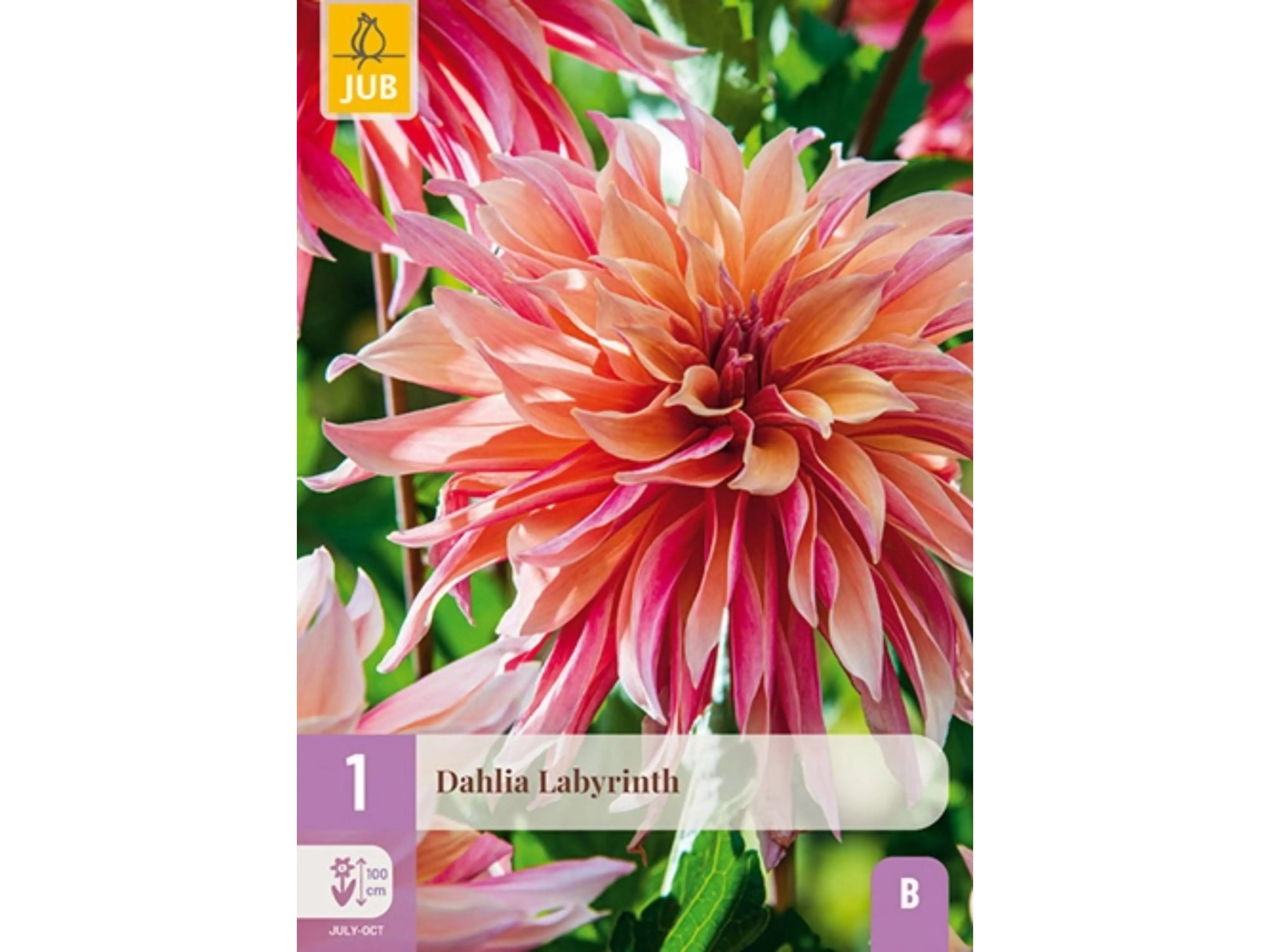 De Dahlia Labyrinth is een grootbloemige decoratieve dahlia met spectaculaire, gevulde bloemen die meteen in het oog springen. Deze populaire dahlia knol is een echte zomerbloeier en zorgt maandenlang voor kleur en sfeer in de tuin. Perfect voor borders én als snijbloem.