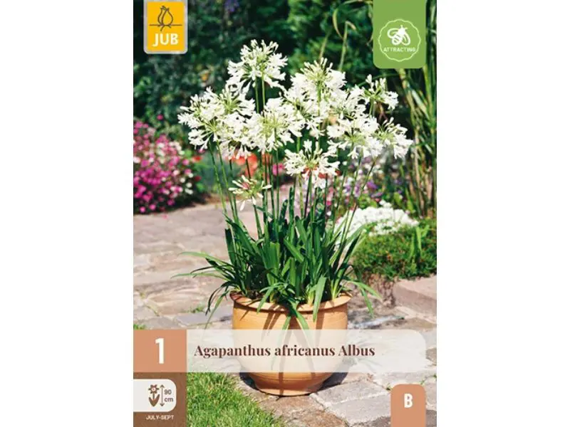 Agapanthus africanus 'Albus' is een bijzondere, witbloeiende zomerplant die zowel binnen als buiten kan worden gehouden. De knol wordt geplant in een pot met kwalitatief goede aarde. Zodra het gevaar voor nachtvorst is verdwenen, kan de plant ook buiten worden geplaatst. Bij aanplant in de volle grond wordt een plantdiepte van ongeveer 10 centimeter aangehouden, in humusrijke en goed doorlatende grond op een zonnige standplaats. Bij gebruik van bloempotten of plantenbakken is het belangrijk altijd verse potgrond te nemen.