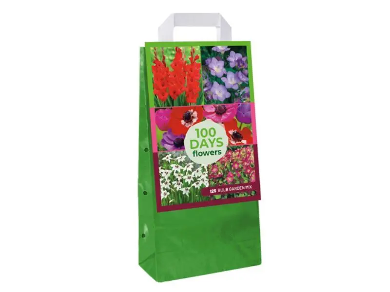 Bloembollenmix Garden Mix is een kleurrijke mengeling van 125 bloembollen in 5 verschillende soorten: Iris hollandica, Gladiolus callianthus, Gladiolen 'Traderhorn', Oxalis 'Iron Cross', Anemonen 'de Caen'.