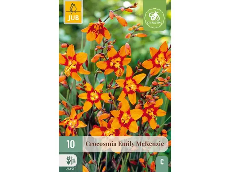Crocosmia 'Emilie McKenzie' is een van de mooiste Crocosmia’s voor de border. De oranje-rode bloemen springen direct in het oog en zorgen voor een warm kleuraccent tussen andere planten in de tuin. Deze variëteit wordt ongeveer 60 centimeter hoog en groeit het best op een zonnige standplaats. De bloemen zijn bovendien zeer geschikt als snijbloem.
