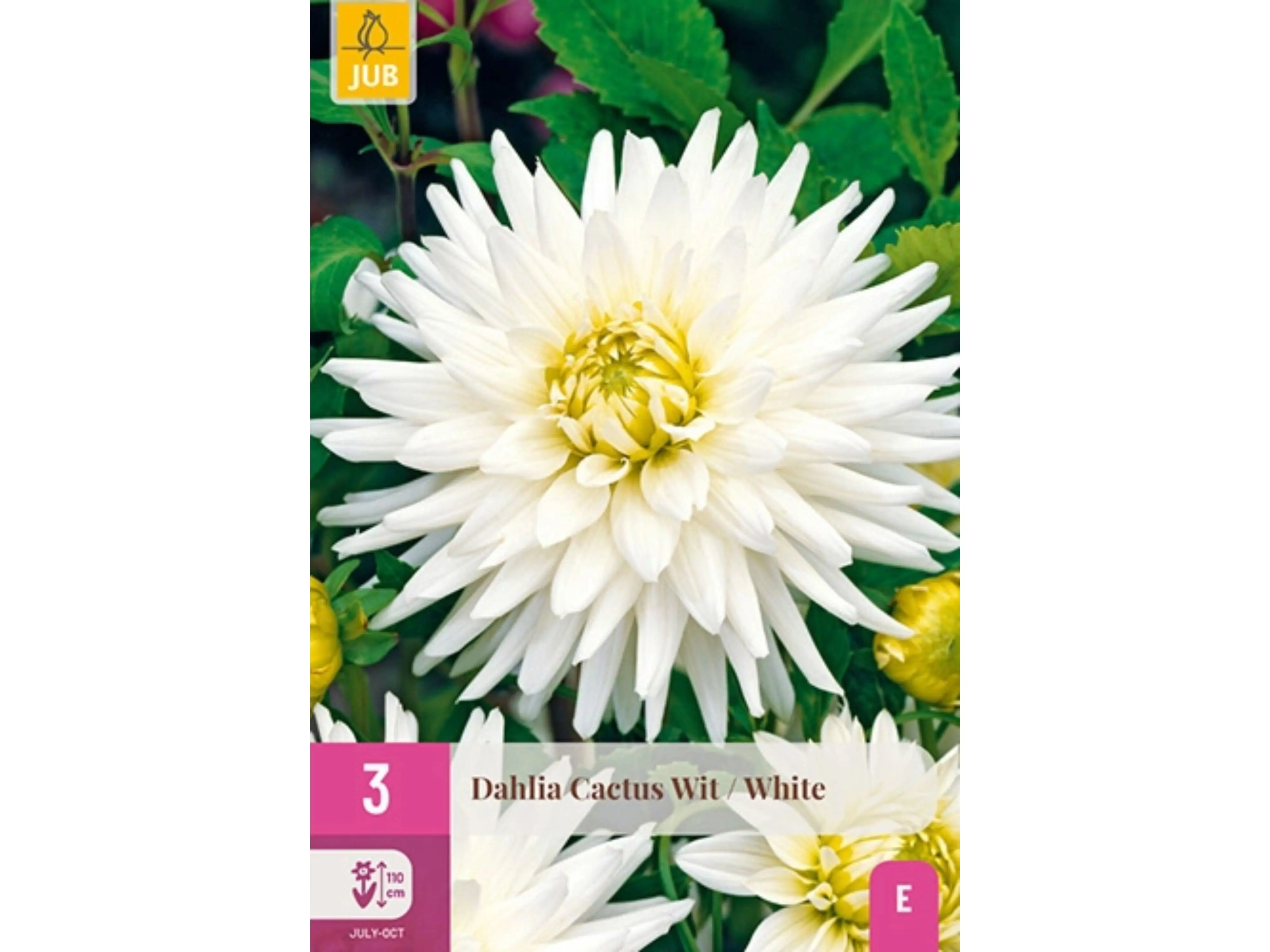 De grootbloemige, witte cactus dahlia is een dankbare zomerbloeier die je maandenlang plezier geeft. Deze dahlia bloeit de hele zomer van juli tot de eerste nachtvorst en wordt ongeveer 100- 110 cm hoog.