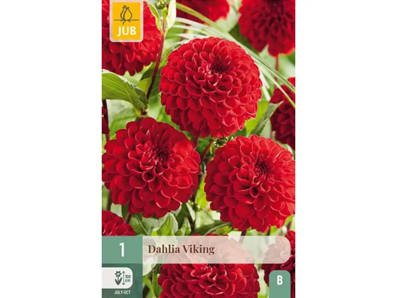 De pompon dahlia Viking heeft kogelronde bloemen en is een dankbare zomerbloeier die u maandenlang plezier geeft. Dahlia Viking bloeit de hele zomer van juli tot de eerste nachtvorst. Dahlia Viking wordt ongeveer 100 cm. hoog. Soms is het nodig om de bloemstengels te steunen. Dahliaknollen kunt u in het voorjaar planten. Dahlia Viking is vorstgevoelig, pas dus wel op met late nachtvorst. Graaf een ruim plantgat, maak de aarde los en vul het plantgat met goede potgrond. Leg de knollen voorzichtig in het plantgat en dek af met 3-5 cm. aarde. De plantafstand van de knollen is 30-60 cm. Geef na het planten de knollen meteen wat water. Dahlias bloeien het rijkst in de volle zon. Bewaar de knollen na de bloei op een vorstvrije plaats en u heeft er jarenlang plezier van. Dahlia Viking is goed te combineren met vaste planten en andere dahlia soorten. De roze bloemen zijn met hun bolvormige bloemen echte blikvangers in de border. Dahlia Viking is ook een uitstekende snijbloem en lang houdbaar op de vaas. Het beste tijdstip om dahlias te snijden is vroeg op de dag. Zet de stelen direct in lauwwarm water met snijbloemenvoedsel.