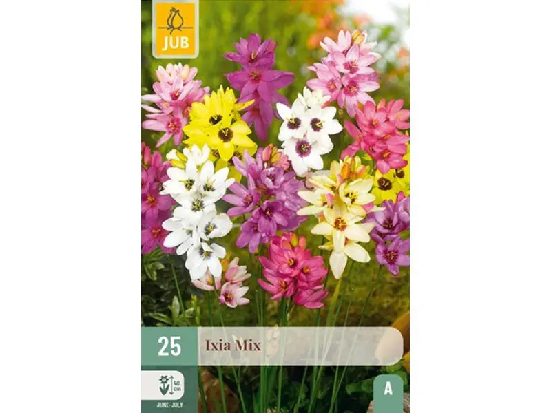 Ixia mix brengt vrolijke kleuren in de zomer naar je tuin, border of terras. De bloemen openen zich dagelijks en groeien steeds iets groter, terwijl ze vlinders en bijen aantrekken. Ixia’s zijn bovendien prachtig als snijbloem in een vaas.