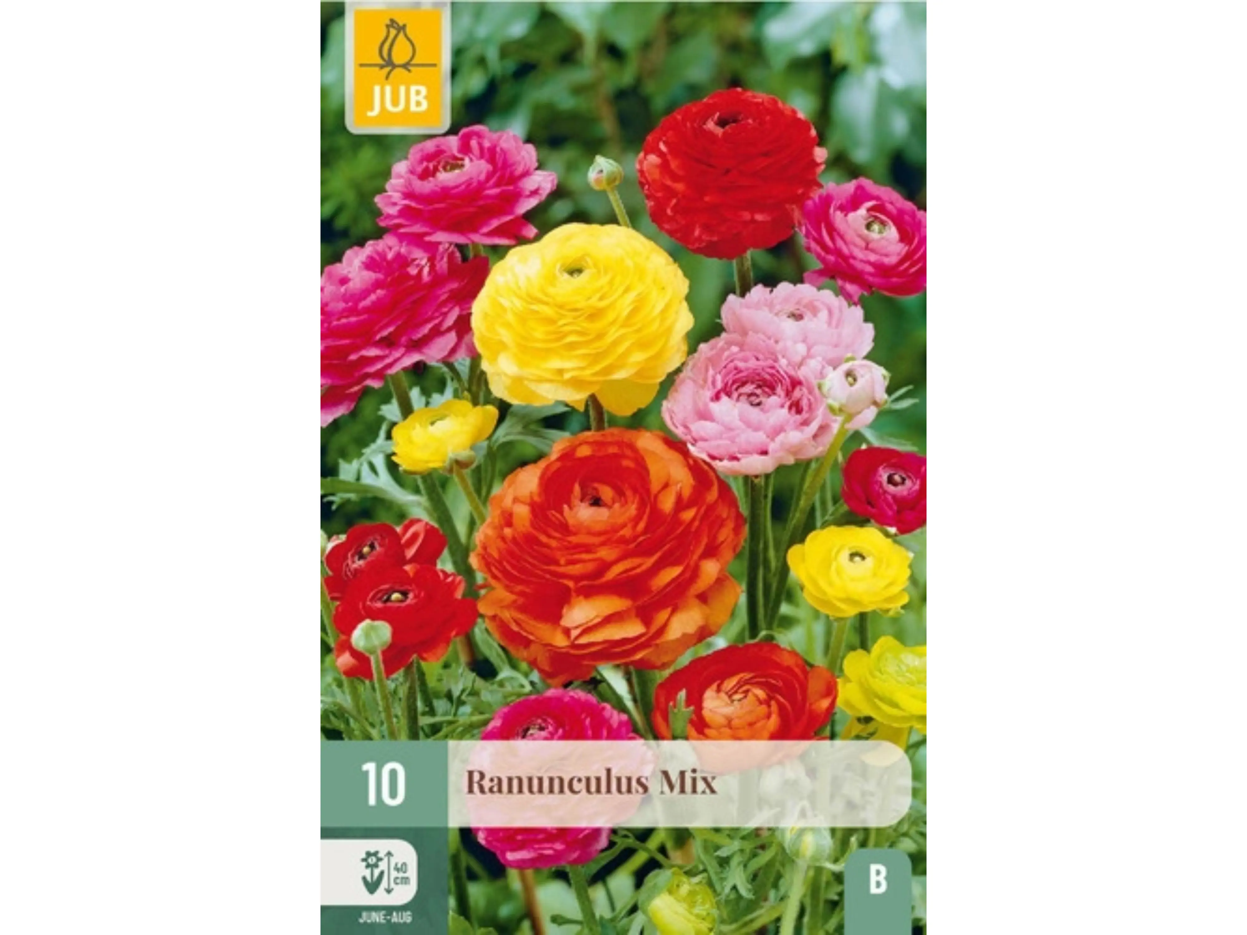 Ranunculus mix is een uitbundige zomerbloeier die maandenlang kleur in de tuin brengt. Van juli tot de eerste nachtvorst staat deze ranunculus in volle bloei. De planten worden ongeveer 30–40 cm hoog en zijn daardoor ideaal voor de border.
