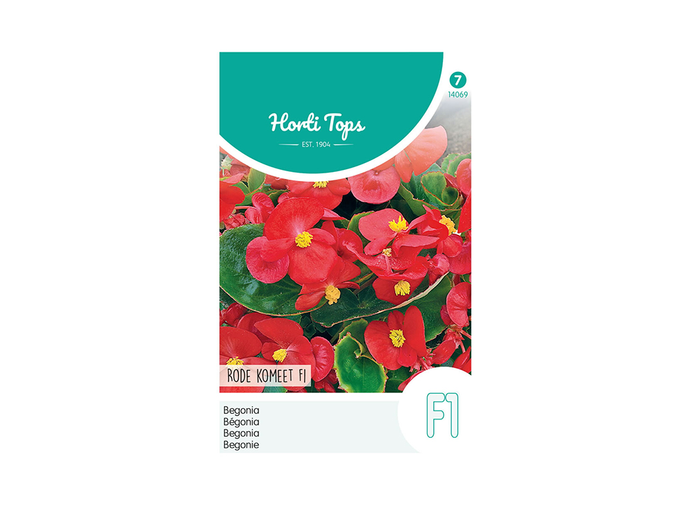 Begonia Rode Komeet F1 is geschikt voor grote groepen in perken maar ook in bakken en potten. Het zijn zowel kamerplanten als eenjarige perkplanten voor buitengebruik. Het zijn bossige planten met vlezig groen/bronskleurig blad. De bloemen zijn rood en verschijnen in flinke trossen die de hele zomer kleur geven.