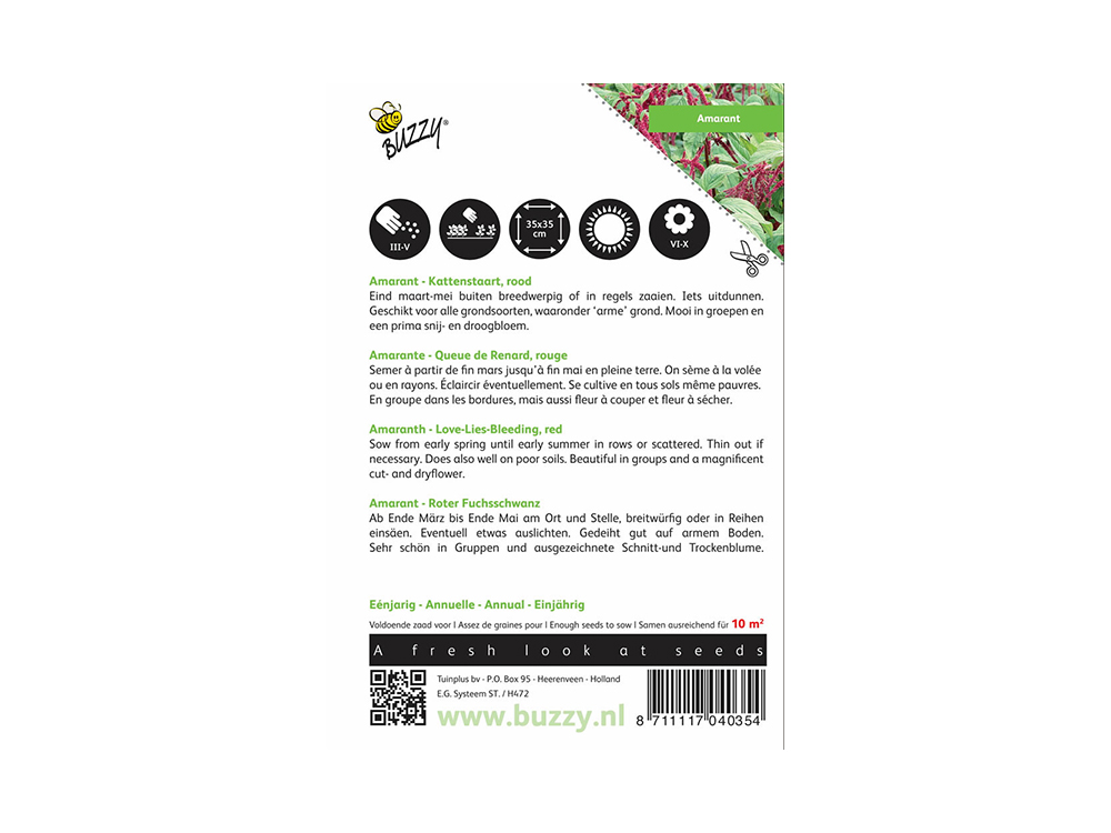 Zaai vanaf eind maart/mei buiten breedwerpig of in regels. Dun dan iets uit.