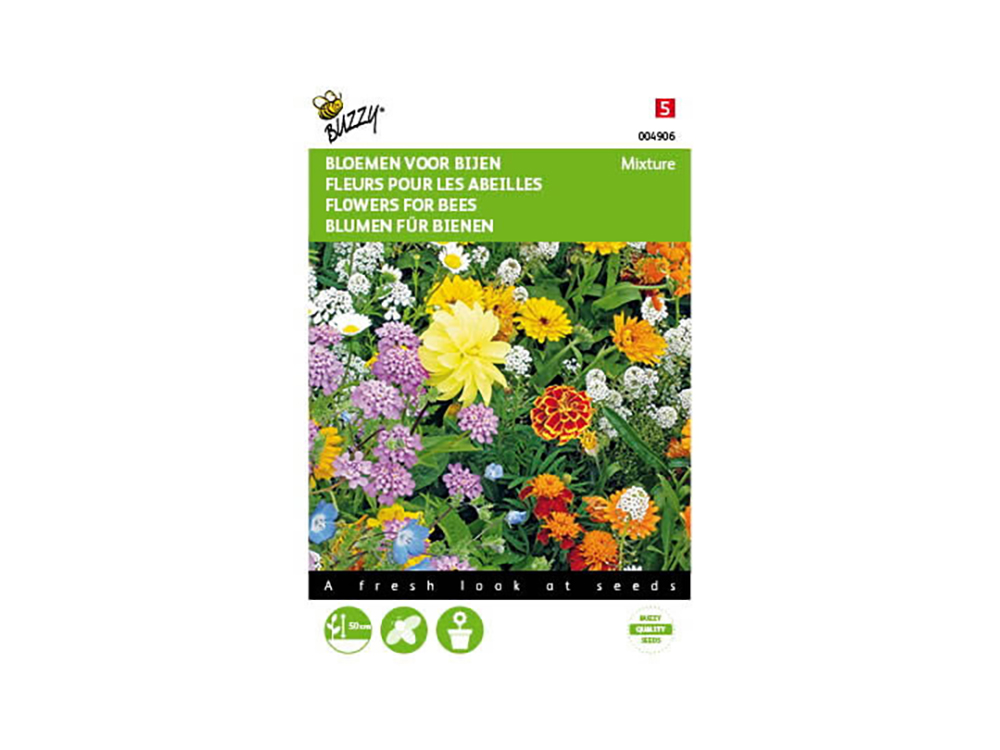 Zaai bloemen voor bijen met deze kleurrijke mixture. Een mooi laagblijvend mengsel met diverse nectarhoudende bloemen die speciaal geselecteerd werden om bijen aan te trekken.