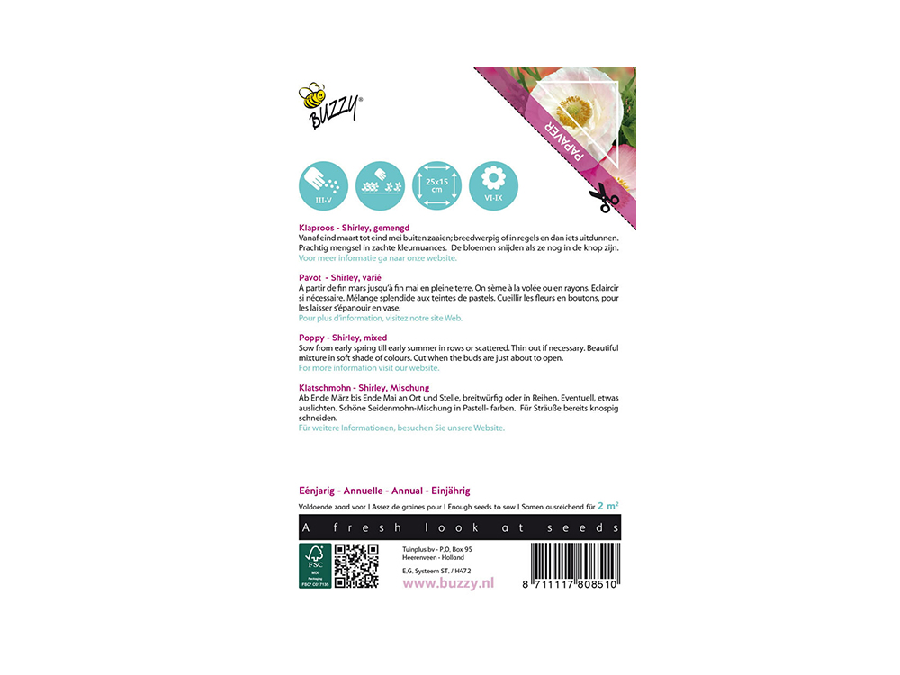 Papaver Shirley mixed is een prachtig mengsel in zachte kleurnuances. De eenjarige bloemen kan je gebruiken als snijbloem. Snijd als ze nog in de knop zijn.