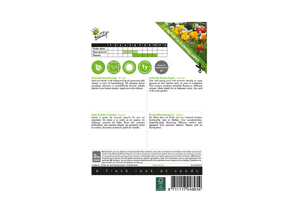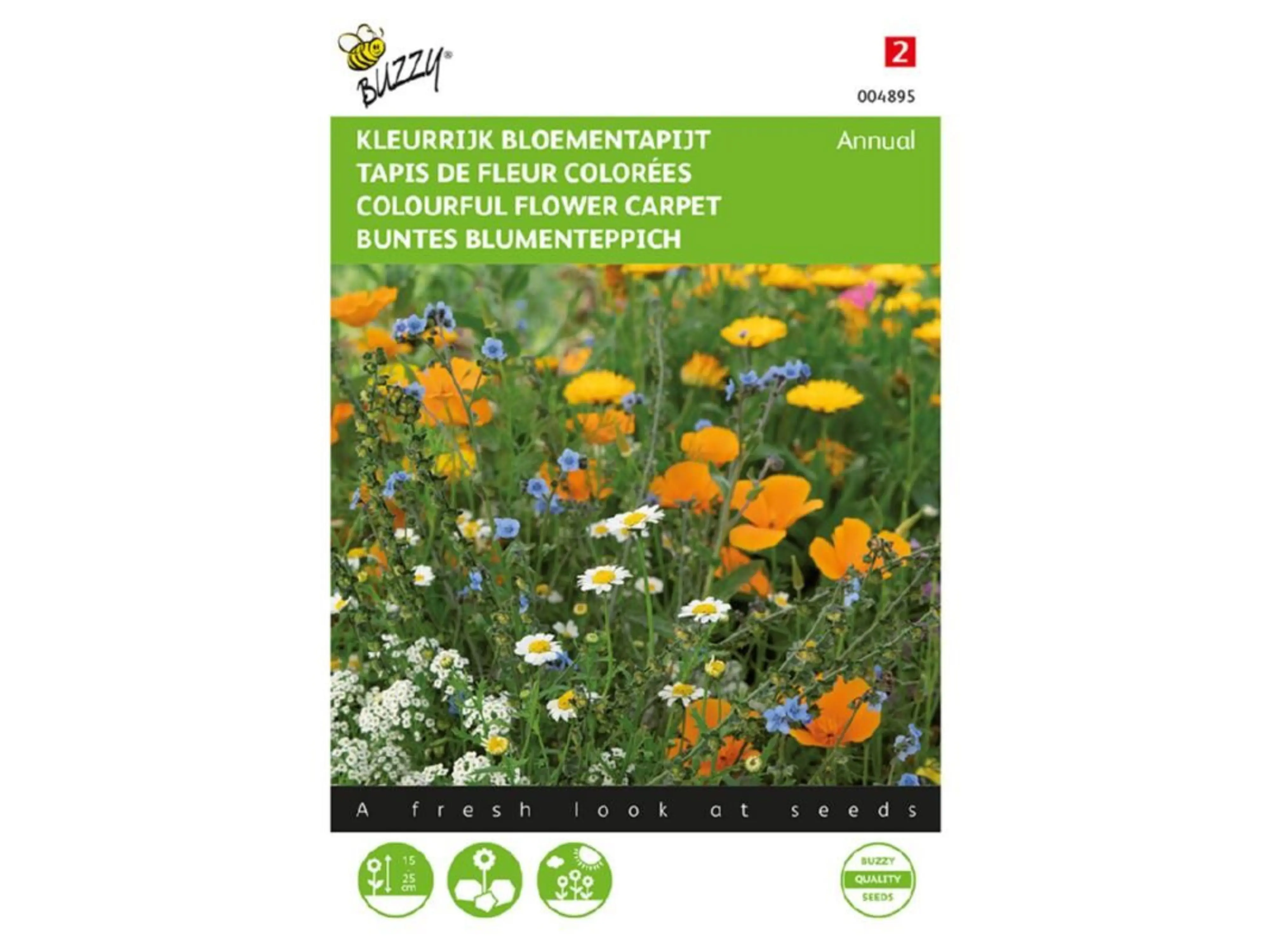 Kleurrijk bloementapijt Annual is een mengsel met prachtige bloemen in verschillende kleuren. Een ideaal mengsel voor tussen stenen, tegels en in de rotstuin. De groeihoogte varieert van 10-30 cm.