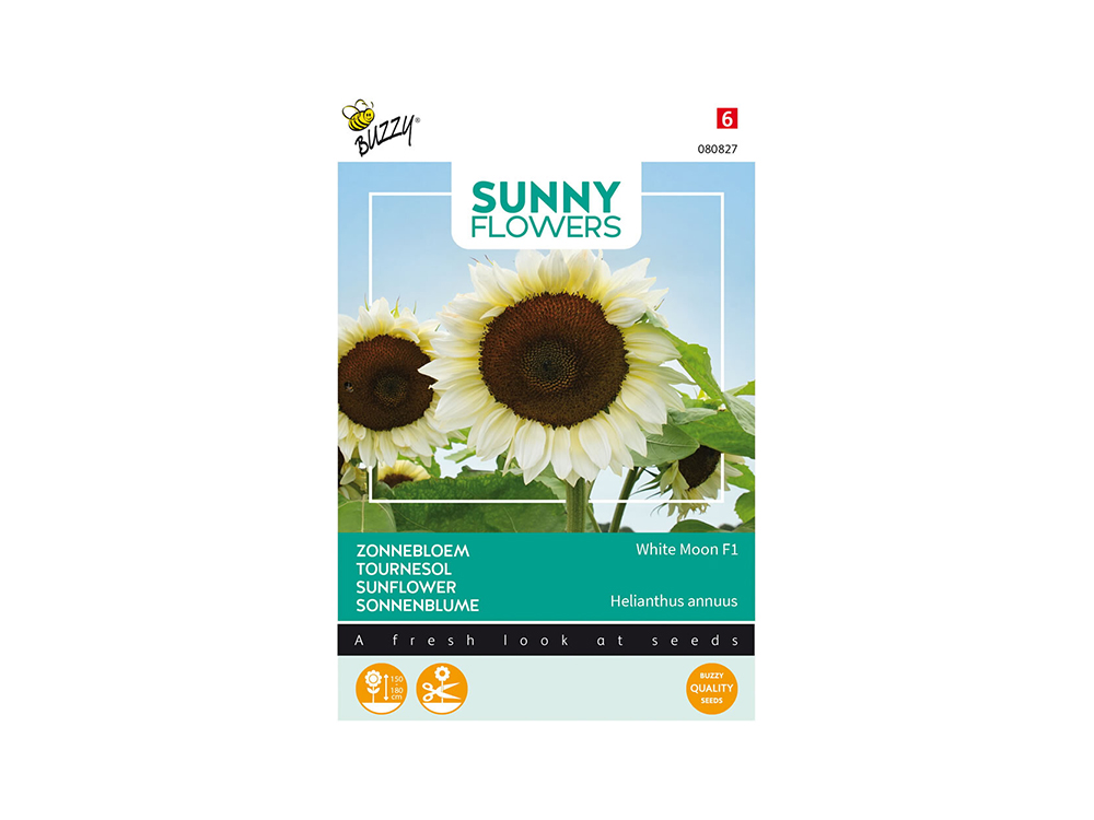 Zonnebloem White Moon F1 is een blikvanger in de tuin. De bloemen hebben vanillekleurige bloemblaadjes die witter kleuren in de volle zon. De bloemen zijn ook uitstekende snijbloemen. Het donkere hart staat in groot contrast.