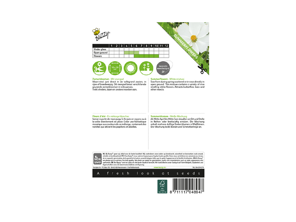 Dit pakje bevat zaad van een rijk eenjarig, op kleur geselecteerd wit bloemenmengsel. Een echt verrassingspakket, uitermate geschikt voor een maandenlange witte bloemenweelde in jouw tuin. De bloemen trekken vlinders, bijen en andere insecten aan.