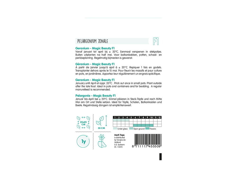 Geranium Magic Beauty F1, de pelargonium beter gekend als de geranium. Sinds jaar en dag één van de meest populaire balkonbakplanten! Dit zadenmengsel bestaat uit een prachtige kleurenmix, ideaal voor potten, schaal- en perkbeplanting.