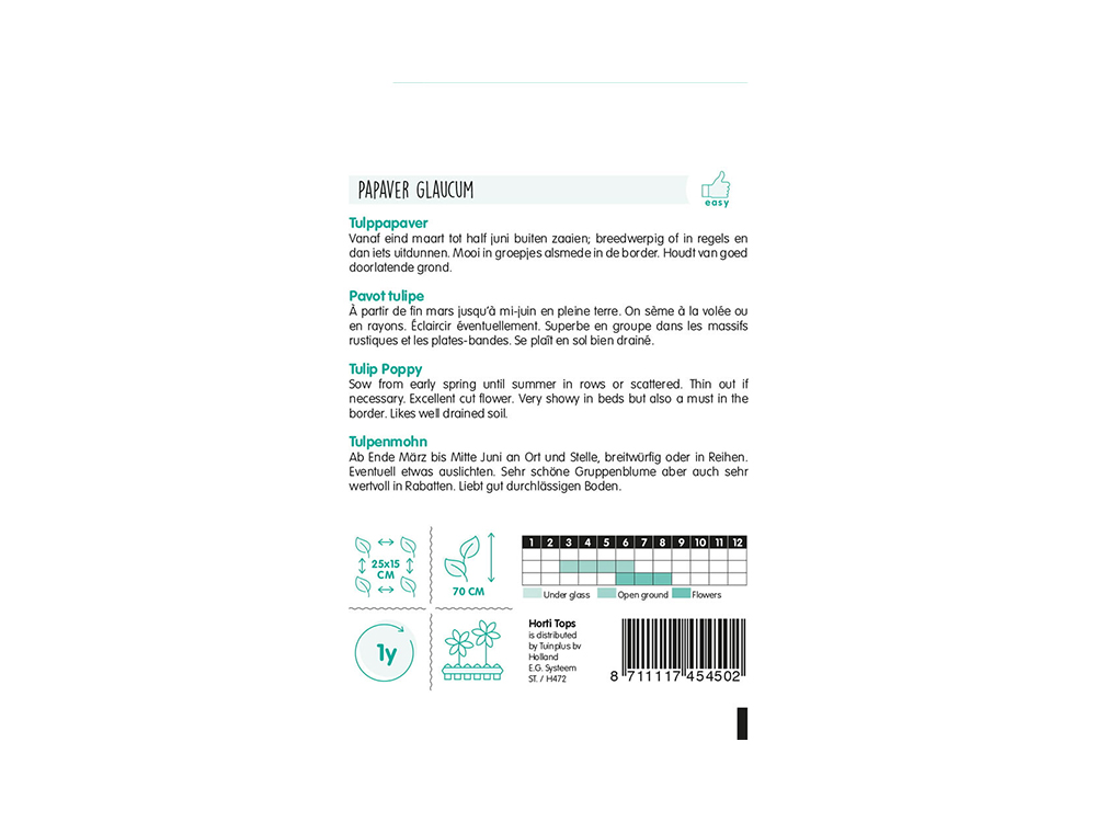 Tulppapaver is een prachtige zuiverrode papaver die onmisbaar is in de border en ook geschikt is voor verwildering. De plant houdt van een goed doorlatende grond.