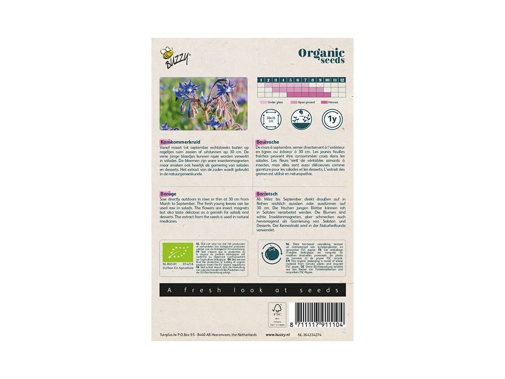 De zaden zijn geteeld zonder gebruik te maken van chemische bestrijdingsmiddelen en/of kunstmest. De bemesting die wordt gebruikt is van 100% biologische oorsprong (dierlijk of plantaardig). Organisch is dus geteeld, geschoond en verpakt volgens de biologische productie methode welke is vastgelegd en wordt gecontroleerd door de stichting Skal. Deze producten zijn te herkennen aan het EKO keurmerk. Voor het verpakken van de zaden zijn wij Skal gecertificeerd (nr. 014725)