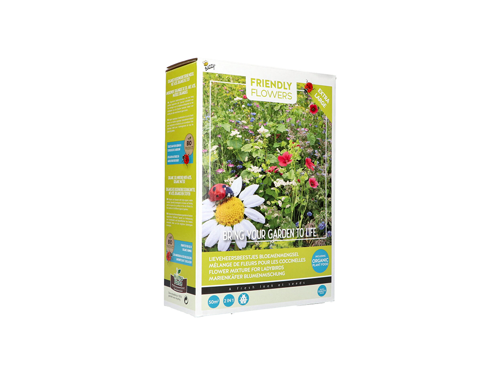 Creëer een bloemenweide die perfect is voor lieveheersbeestjes met dit mengsel van meer dan 20 verschillende soorten bloemen. Geniet van 5 maanden bloei met onder andere Lavatera trimestris, Fagopyrum esculentum, Centaurea cyanus, Anethum graveolens, Lathyrus odoratus, Borago officinalis, Agrostemma githago, en Cosmos bipinnatus.