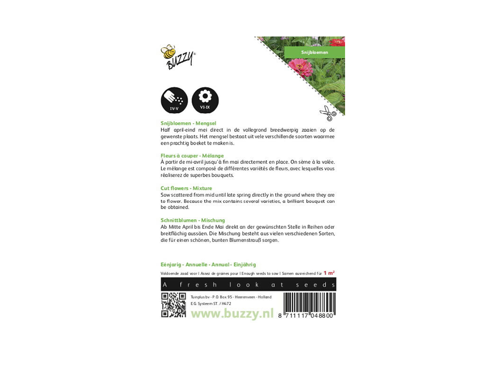 Snijbloemen Mengsel is uit vele verschillende eenjarige soorten samengesteld. Ideaal om een prachtig kleurrijk bloemenboeket samen te stellen.