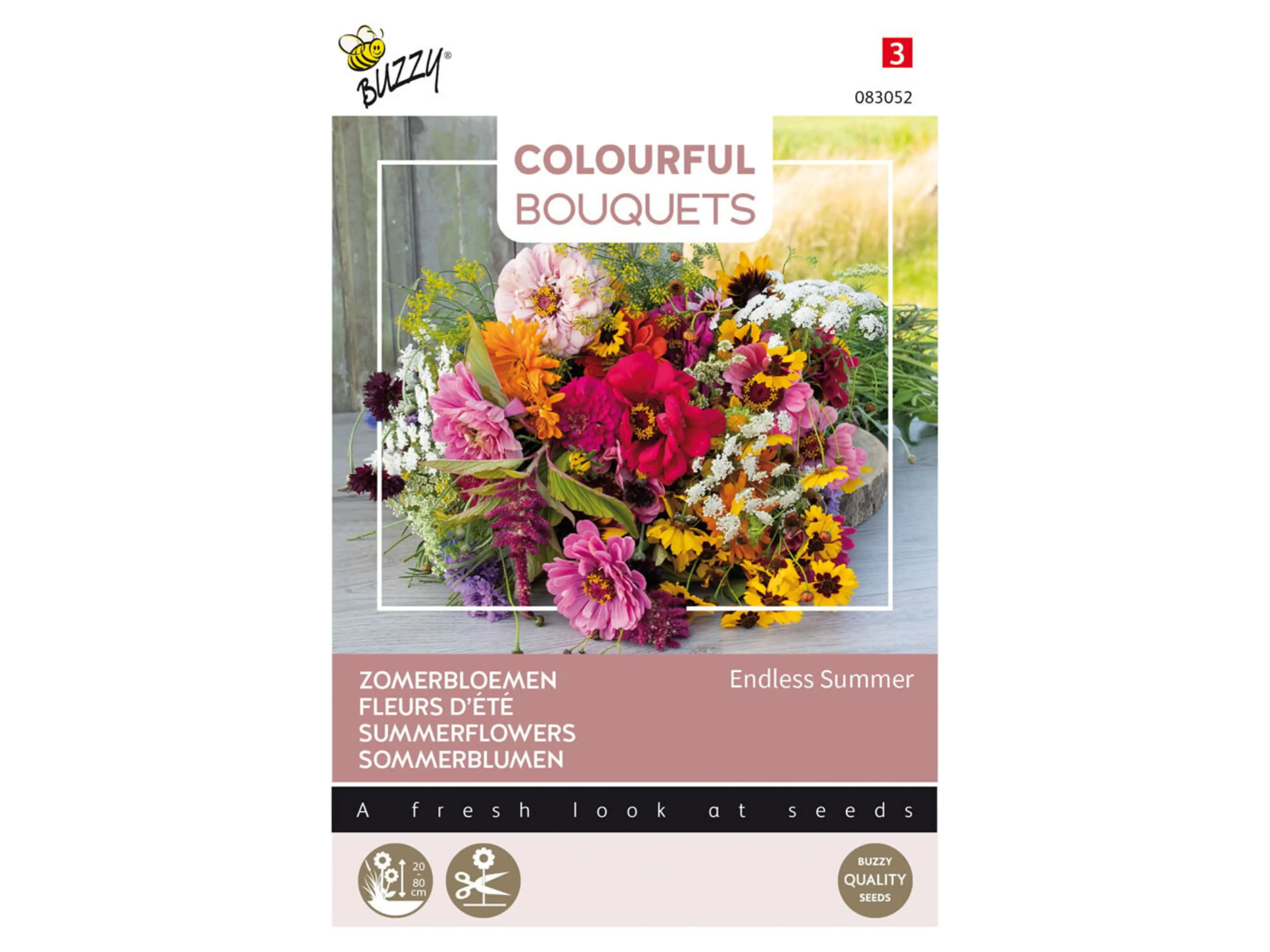 Zomerbloemen Endless Summer is een kleurrijk bloemenmengsel met een grote diversiteit aan bloemen. De bloemen staan prachtig in de border of in een veld en zijn ook aantrekkelijk voor bijen en vlinders. Ook ideaal om een boeket uit eigen tuin te plukken.