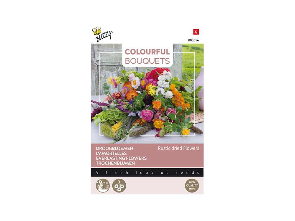 Droogbloemen Rustic dried Flowers is een mengsel van opvallende bloemen waarmee je prachtige verse boeketten kunt maken. De bloemen zijn ook geschikt om te laten drogen en er droogboeketten van te maken waar je maandenlang plezier van hebt.