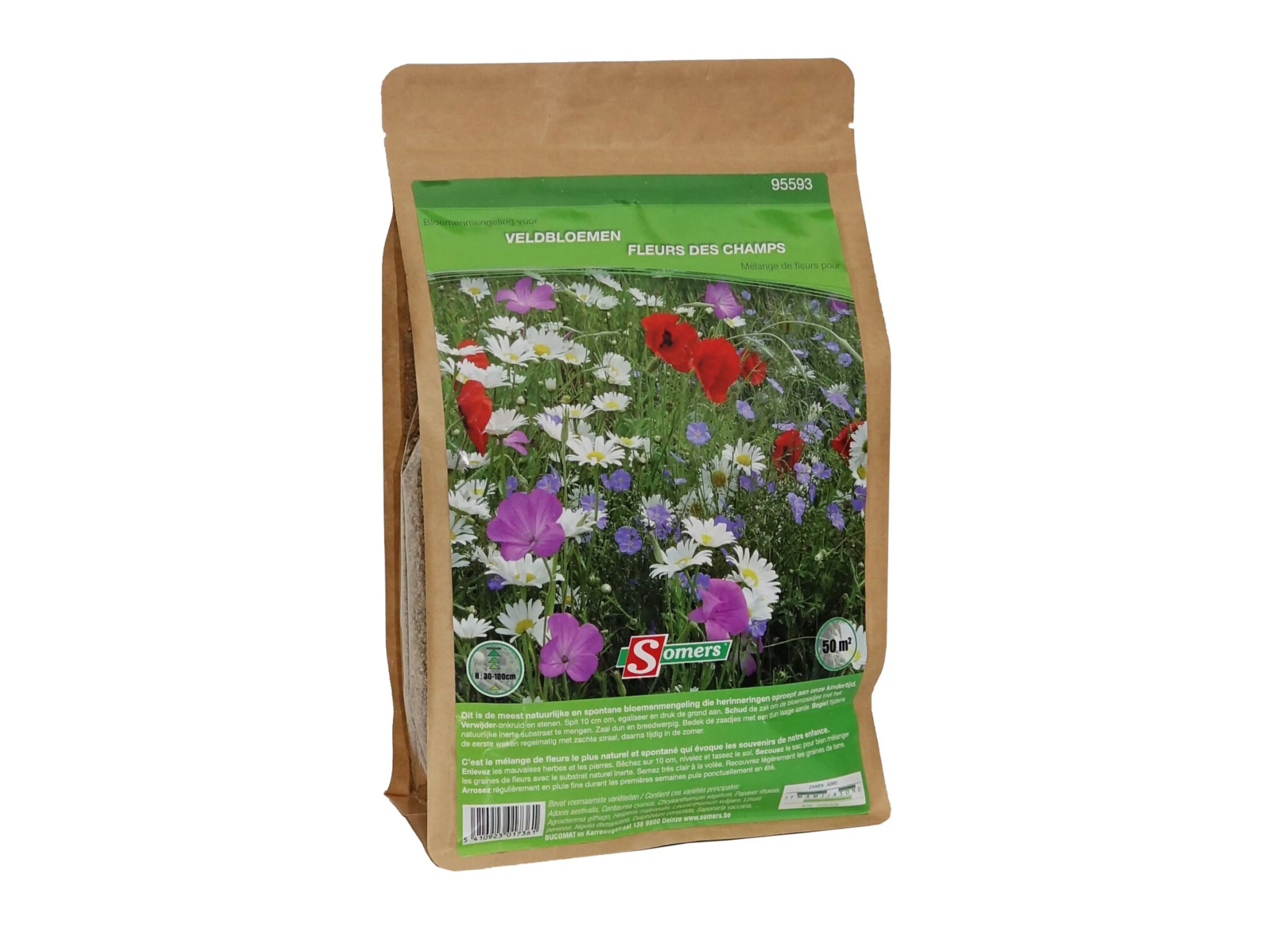 Een natuurlijk en spontaan samengesteld bloemenmengsel die herinneringen oproept aan onze kindertijd. De veldbloemen kunnen in het voor- als najaar gezaaid worden en bloeien de hele periode.